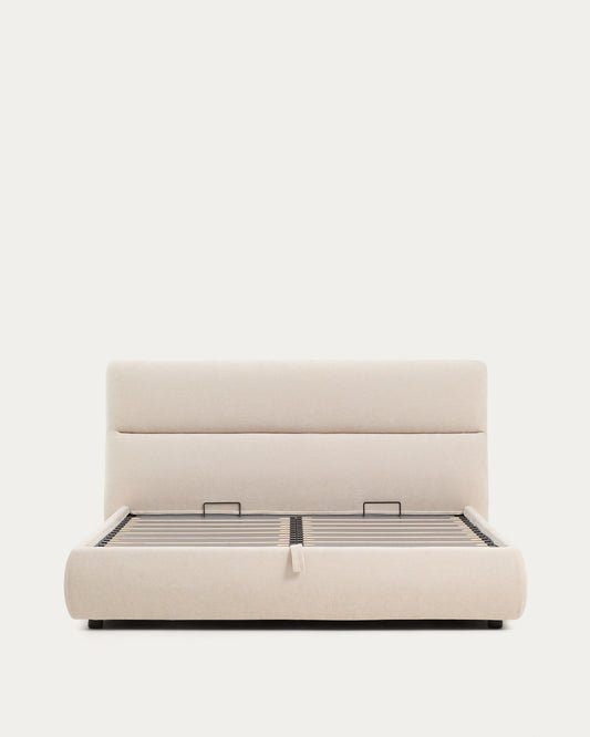 Dafra beige chenille removable-cover bed with lift-up storage base for 180 x 200 cm mattress