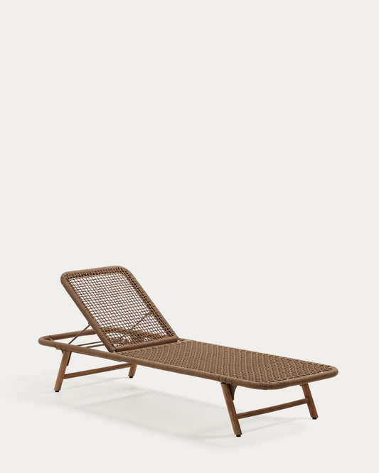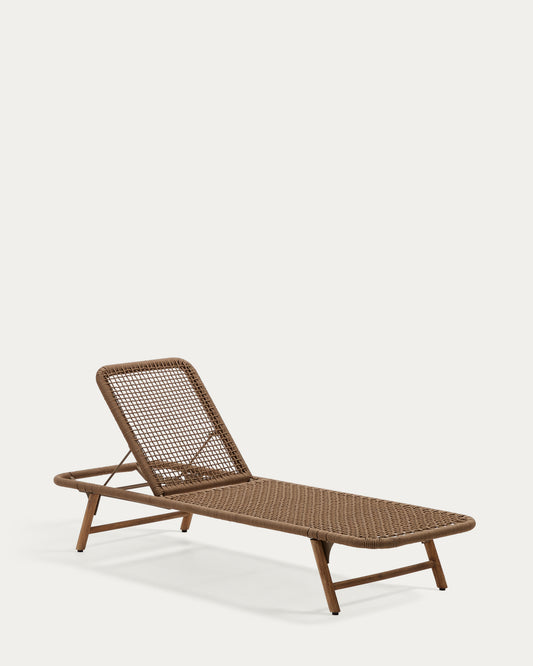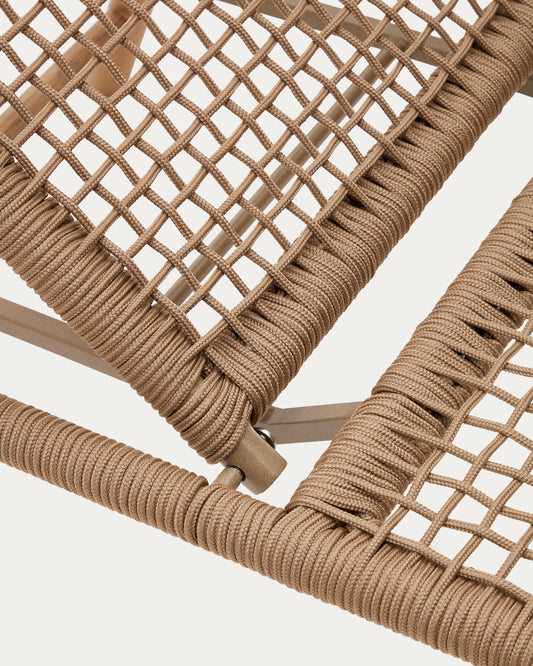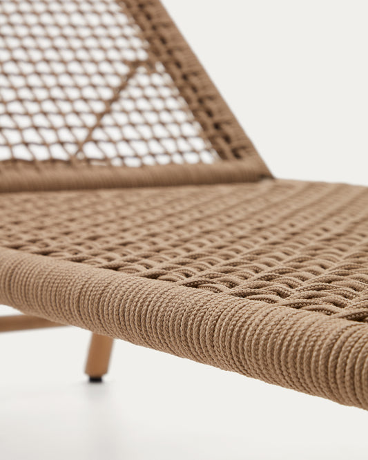 Dandara sun lounger in steel, beige rope and legs in solid FSC 100% acacia wood