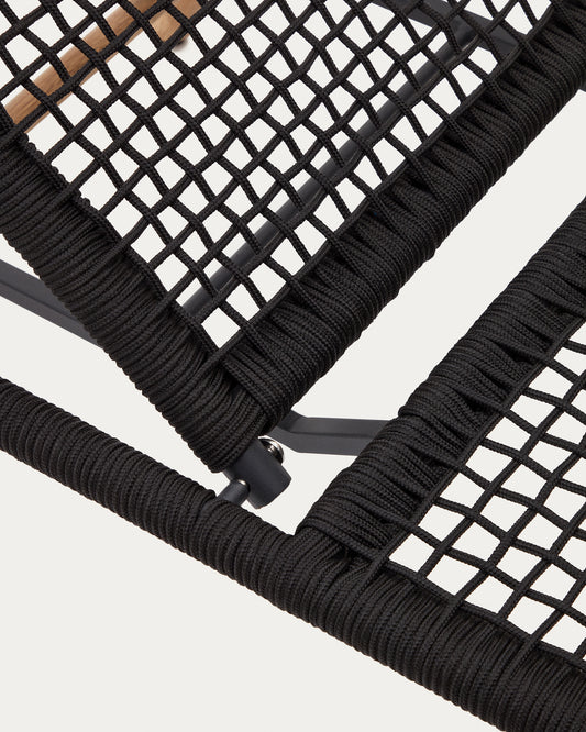 Dandara sun lounger with steel structure, black cord and solid acacia wood legs FSC 100%