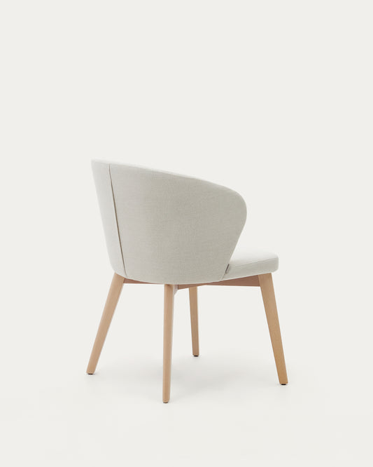 Darice chair in beige chenille and solid beech wood in a natural finish FSC 100%