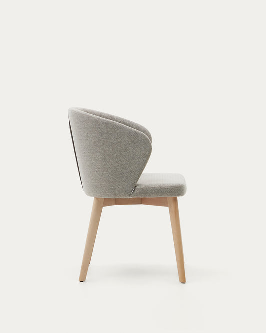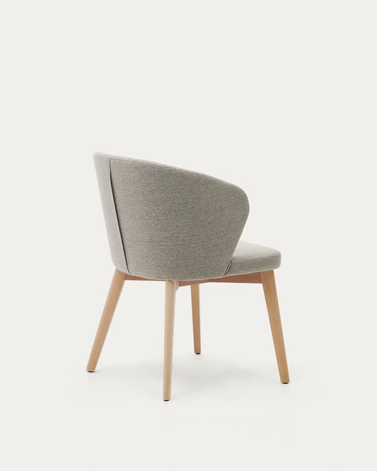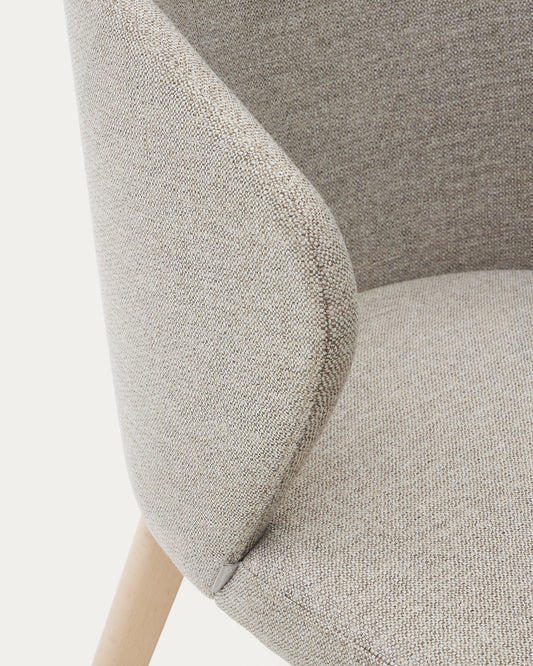 Darice chair in brown chenille and solid beech wood in a natural finish FSC 100%