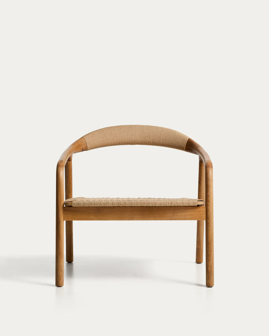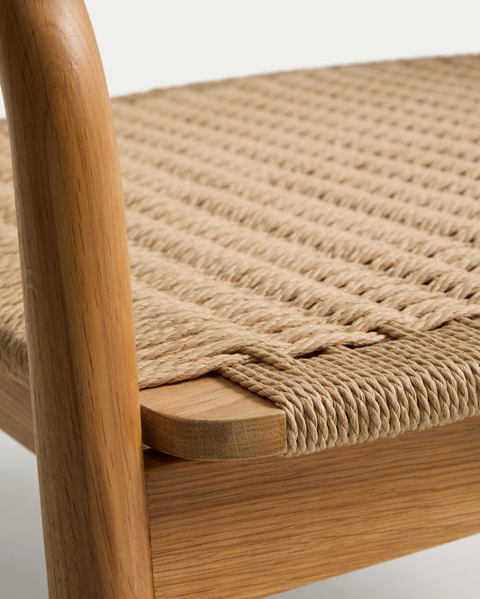 Derile armchair in solid oak wood with natural-tone finish and beige paper rope cord FSC 100%
