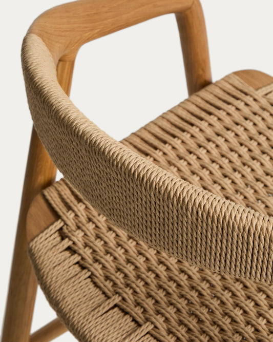 Derile stool in solid oak wood with natural-tone finish and beige paper rope cord FSC 100% 65 cm