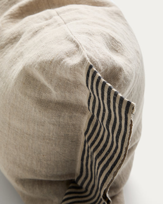 - Linen cushion cover with a striped detail.