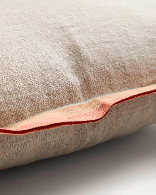Disea cushion cover in beige linen with orange detail 45 x 45cm