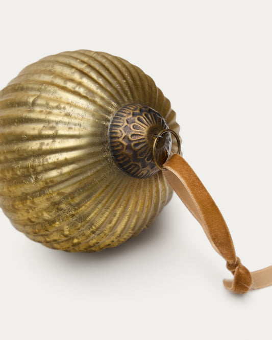 Elur set of 2 medium-sized Christmas baubles made of gold recycled glass, Ø 10 cm