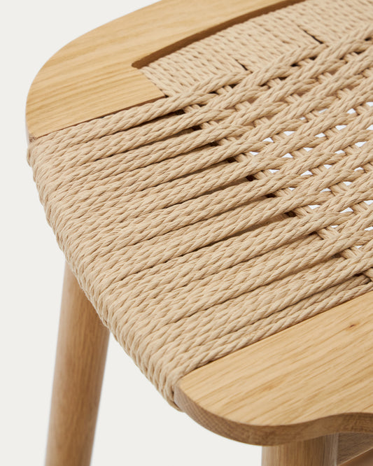 Enit stool made of beige paper cord and solid oak wood with natural finish, 65cm FSC Mix Credit