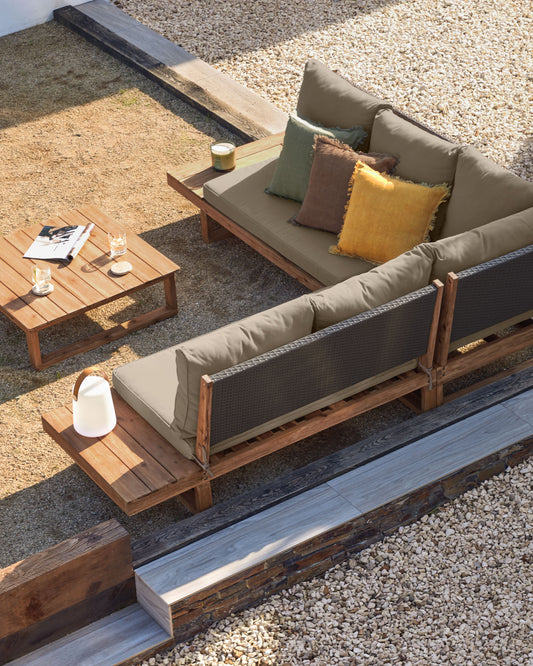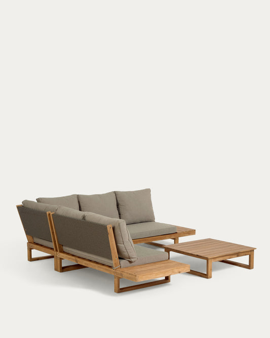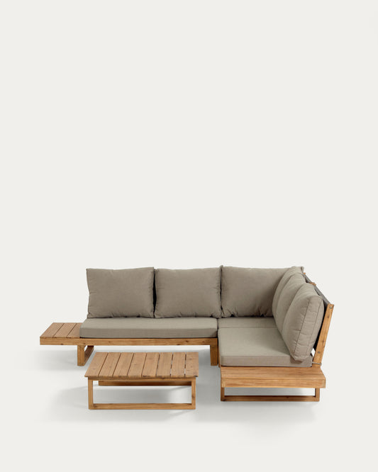 Flaviina 5 seater solid acacia wood corner sofa set with table