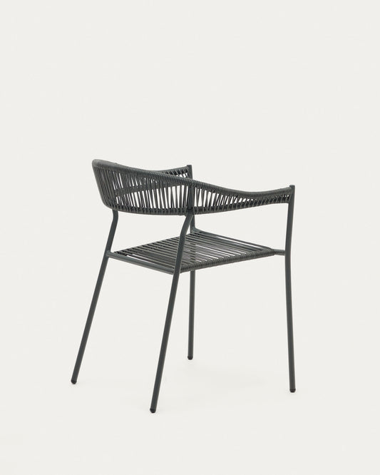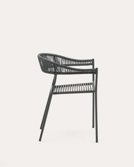 Futadera stackable outdoor chair in grey synthetic cord and grey painted steel
