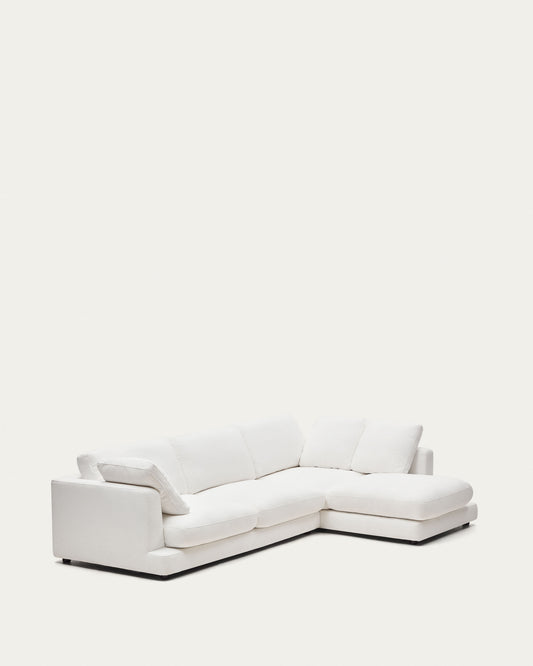 Gala 4-seater sofa with right chaise longue in white chenille FSC Mix Credit 300cm