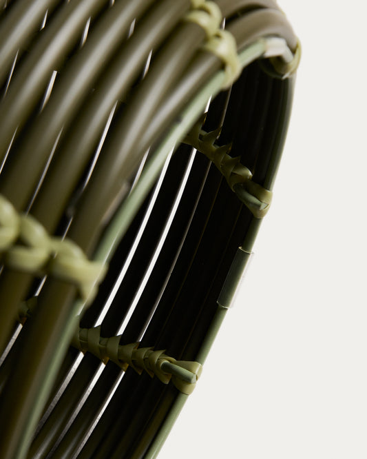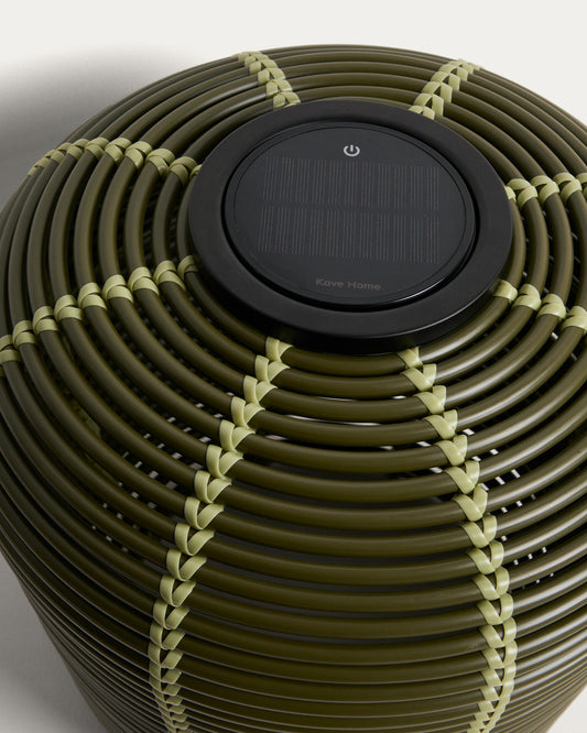 Garoina outdoor solar LED table lamp in green synthetic rattan Ø35cm