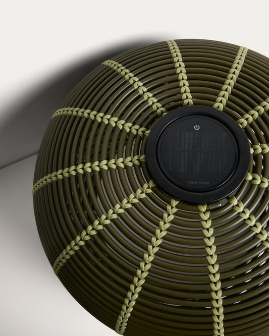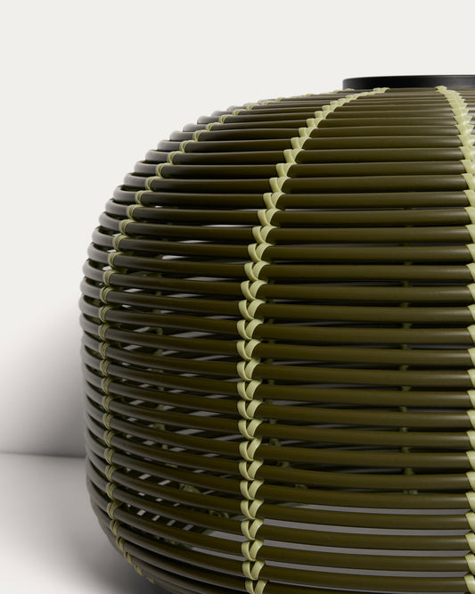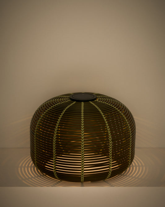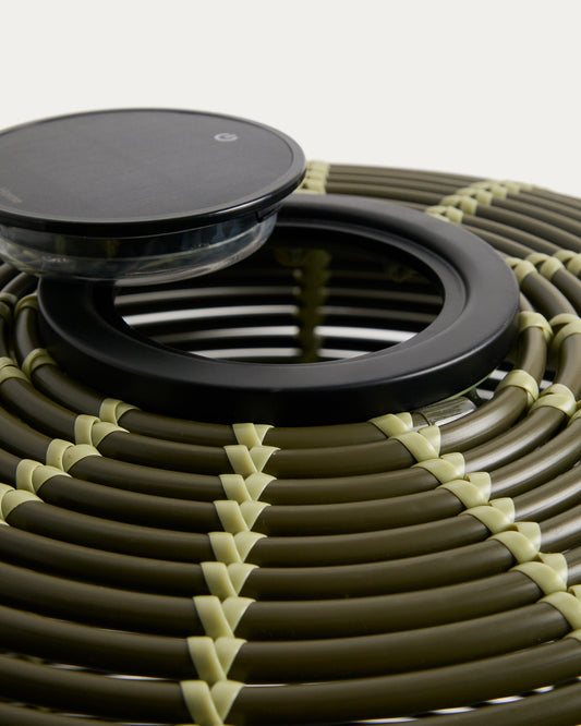 Garoina outdoor solar LED table lamp in green synthetic rattan Ø50cm