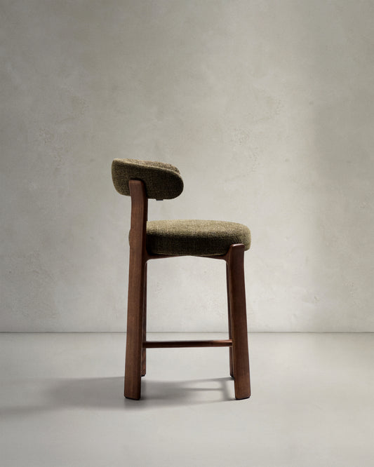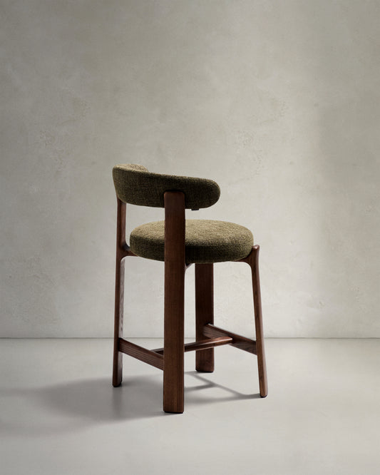 Granite stool in green chenille and solid ash wood with walnut-coloured finish FSC 100% 65cm