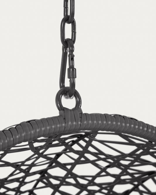 - Hanging armchair made of hand-braided dark grey polyrattan.
