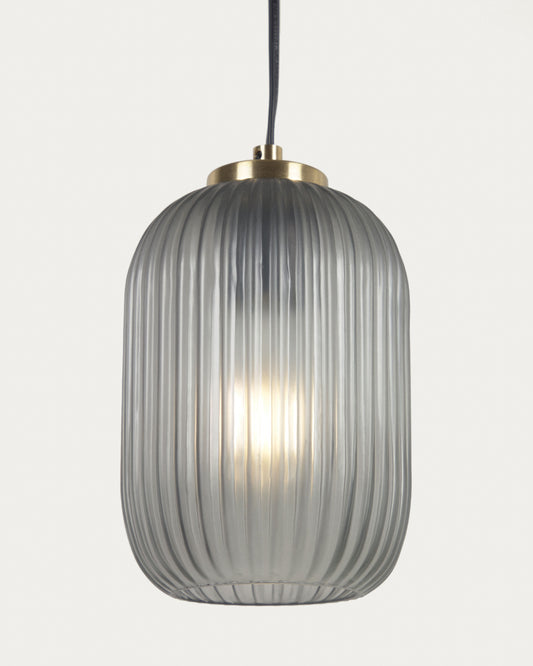 - Ceiling light in metal with brass finish and smoked glass shade.