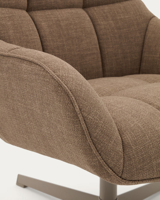 - Swivel armchair with cushioned arms upholstered in structured fabric with light brown recycled polyester. It has a medium seat firmness.