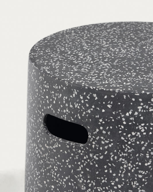 Jenell outdoor terrazzo footrest in black, Ø 35 cm