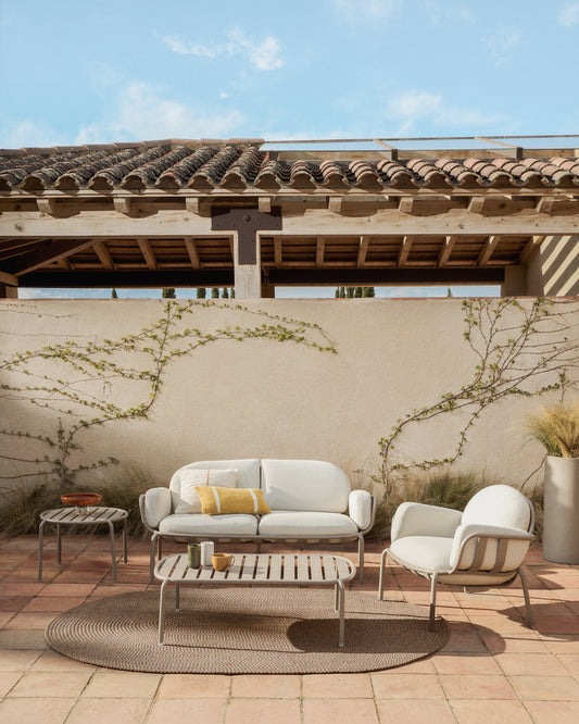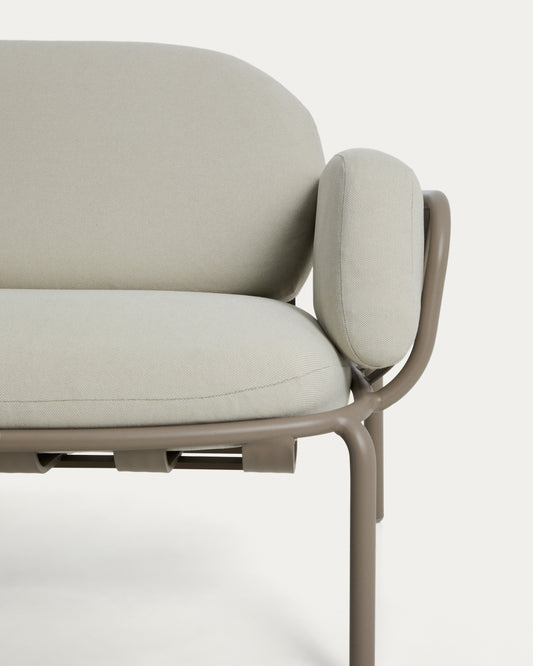 Joncols outdoor 2-seater sofa in aluminium with taupe painted finish and beige cushions 164cm