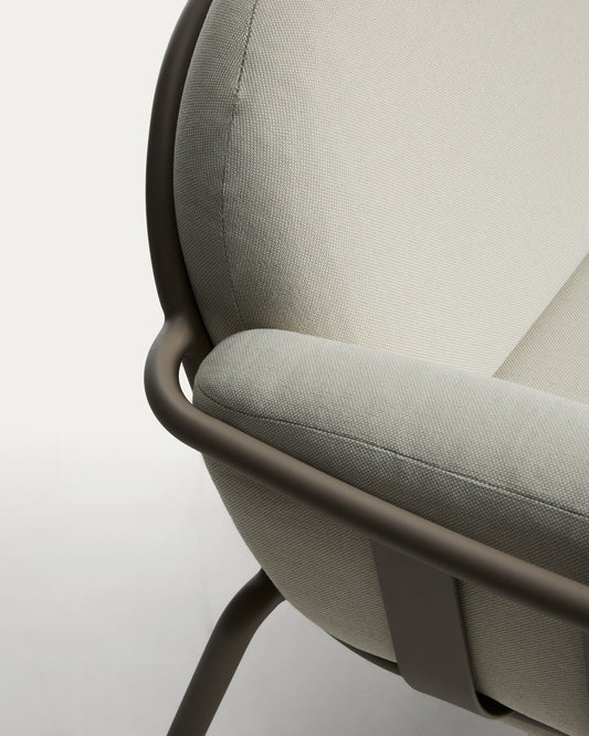 Joncols outdoor 3-seater sofa in aluminium with taupe painted finish and beige cushions 224cm