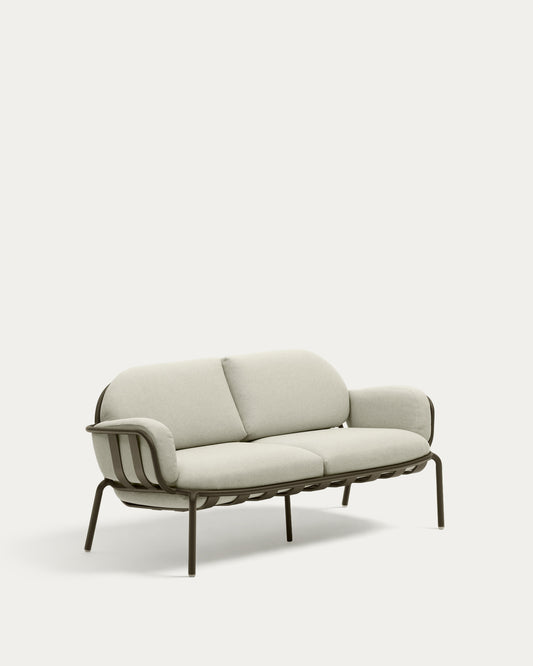 Joncols outdoor 2-seater sofa in aluminium with green painted finish and beige cushions 164cm