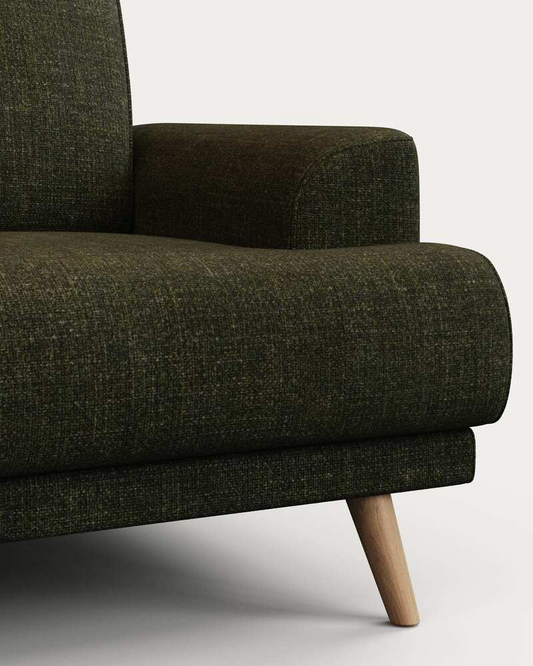 Karin 2-seater sofa green with solid beech wood legs with natural finish, 210 cm