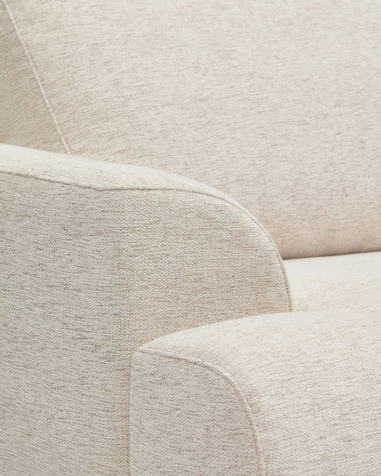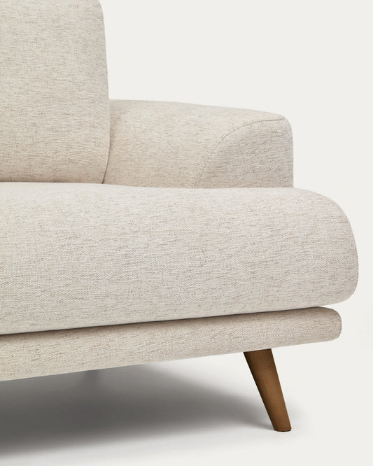 Karin beige 3-seater sofa with solid beech wood legs in walnut-tone finish 231 cm