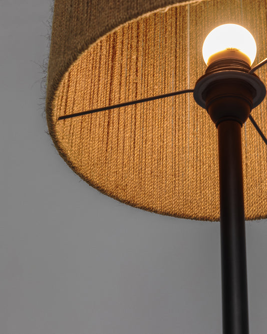 Kor table floor lamp made of jute and acacia wood in a dark finish