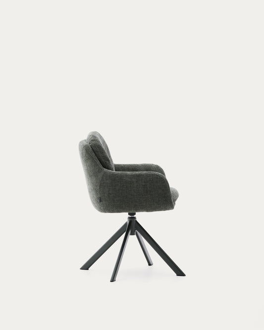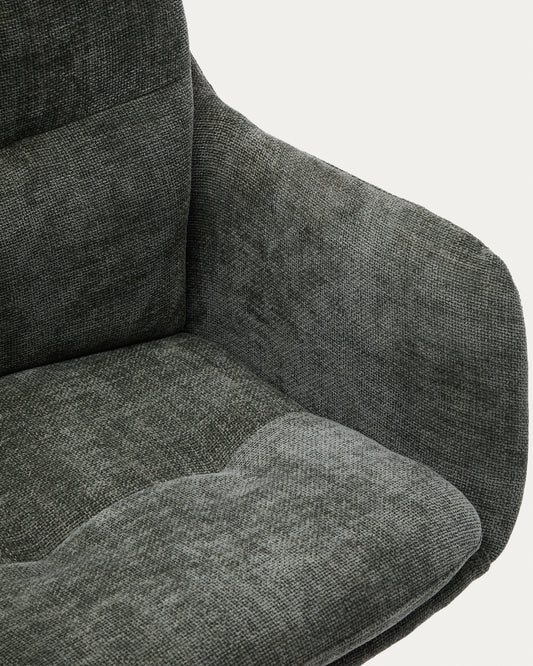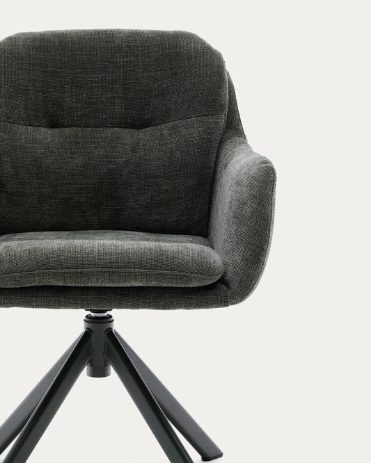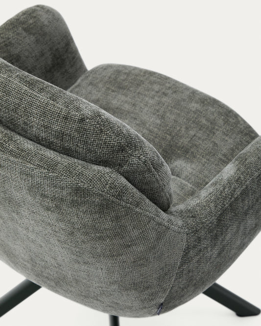 - Swivel chair with armrests upholstered in soft, tight-knit chenille.