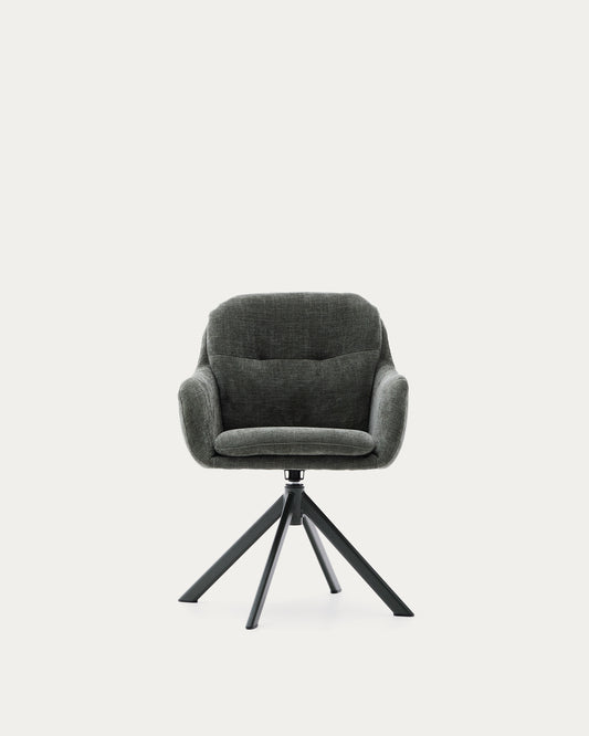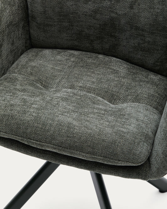 Lexa swivel chair in green chenille and steel legs in a green finish