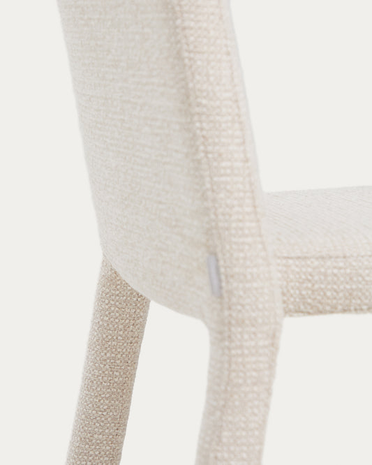 - Stackable chair upholstered in 3D-effect structured chenille fabric with C0 water-repellent treatment.