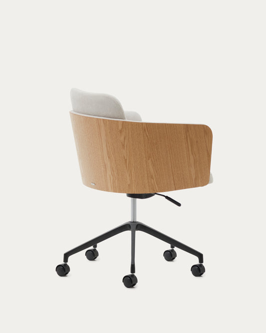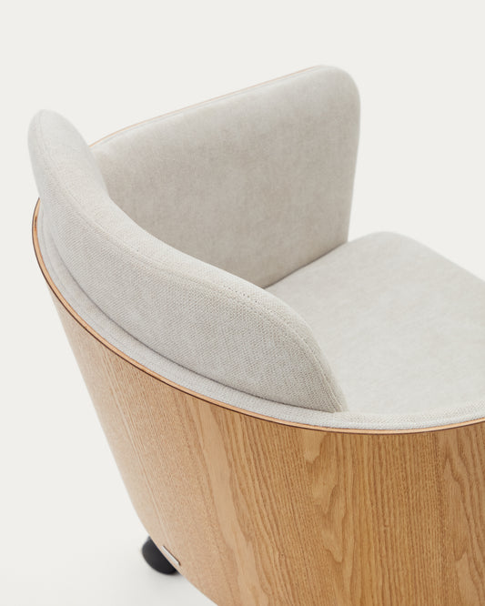 Madai desk chair in beige chenille and ash veneer with natural tone finish FSC Mix Credit