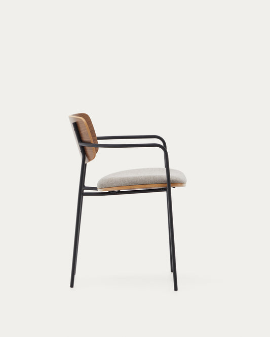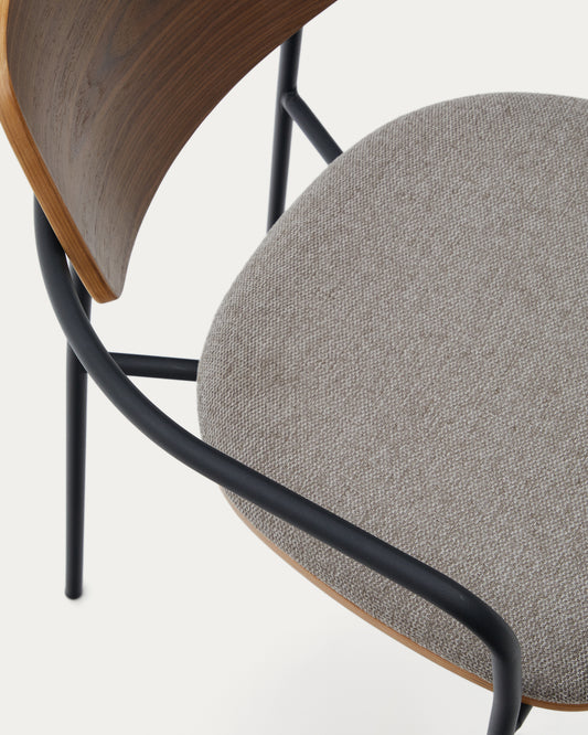 Maureen stacking chair in poplar plywood with warm tone finish and black metal legs, 100% FSC