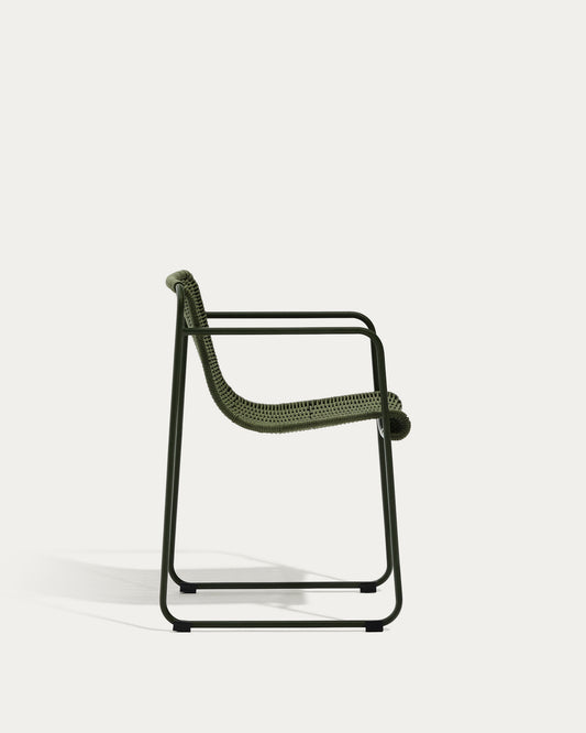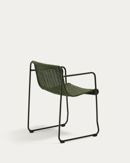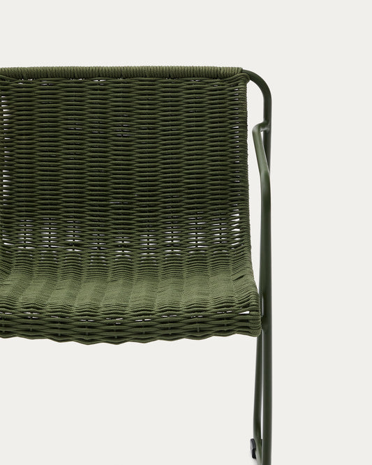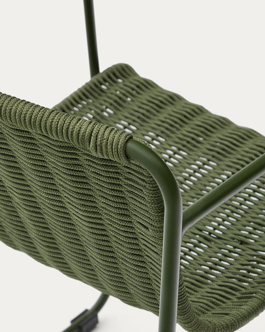 - Hand-woven Seat and backrest made with hand-woven, UV-resistant mottled green rope cord.