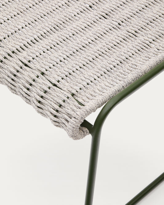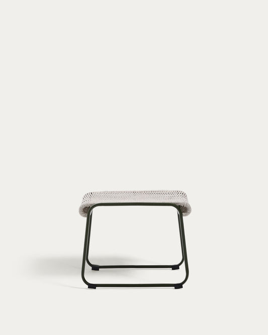 Maurina footrest in green galvanised steel and ecru and grey rope cord 58 x 52.5cm