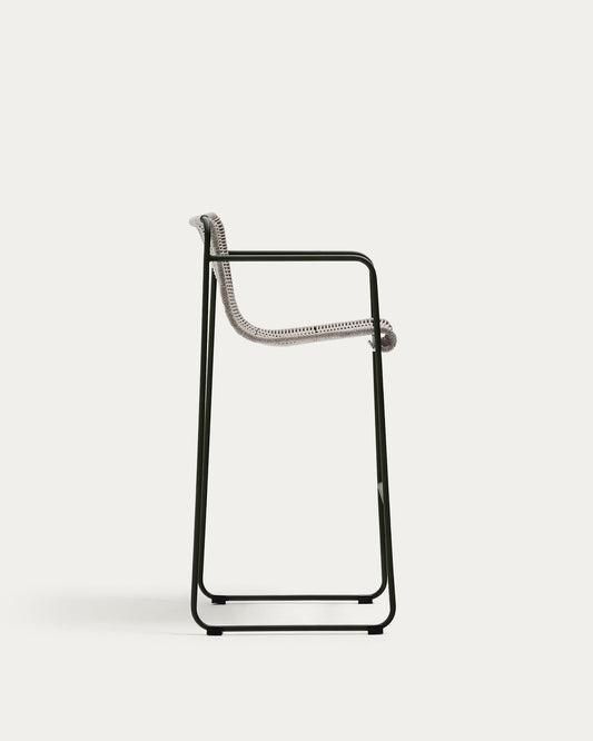 Maurina stool in green galvanised steel and ecru and grey rope cord 74,5cm