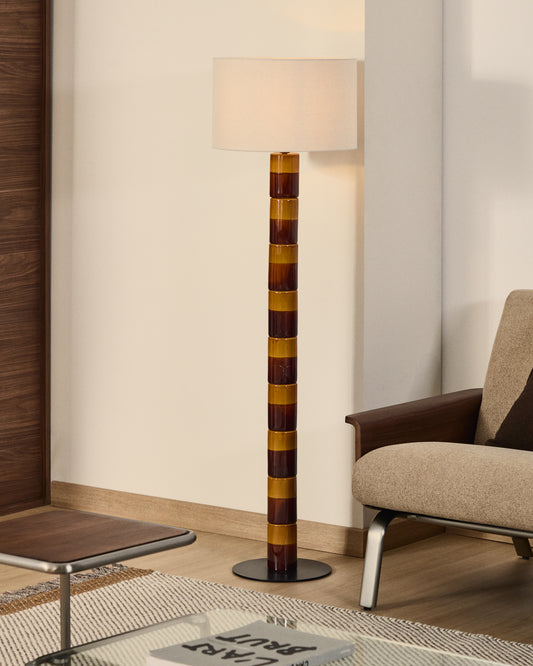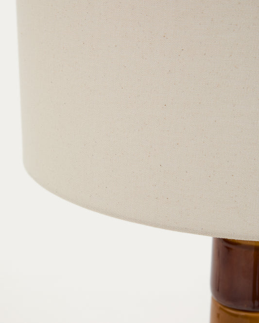 Mavran floor lamp with brown and mustard ceramic base and cotton lampshade