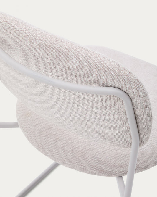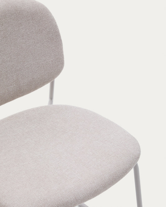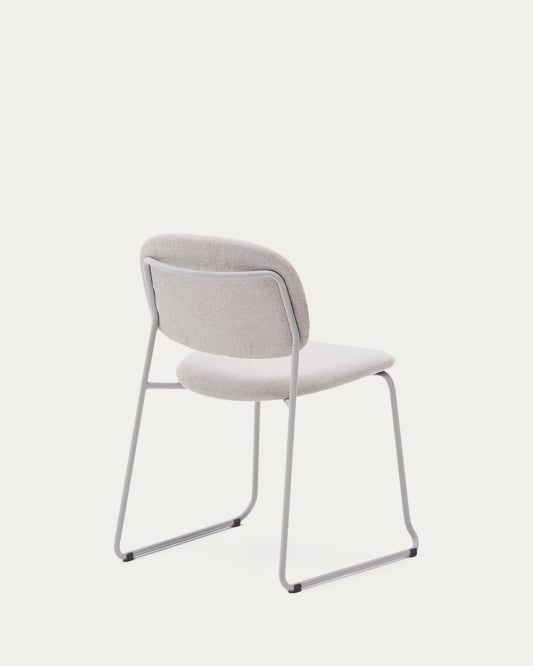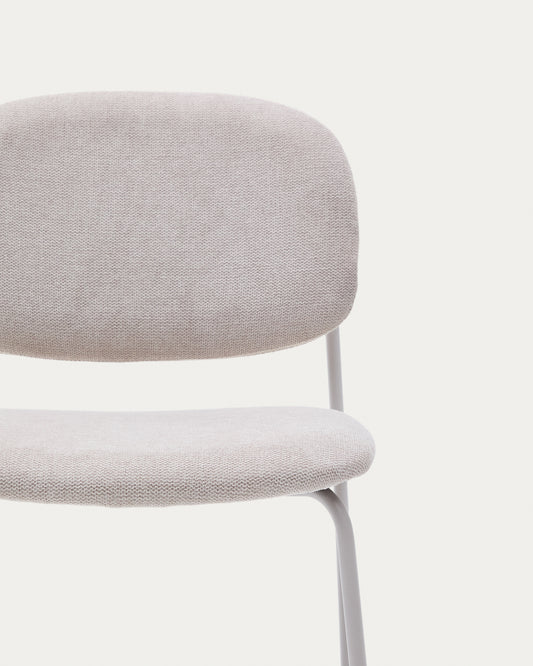 Meli stackable chair in beige chenille with beige metal legs FSC Mix Credit