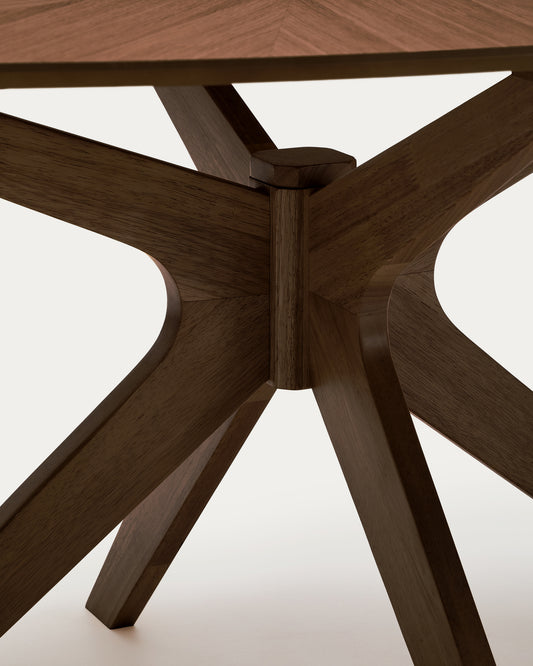 Each Naanim table is unique, crafted with natural walnut veneer and solid rubberwood legs. Additionally, the grains converge in a star shape with exclusive shades, giving it a distinctive character.