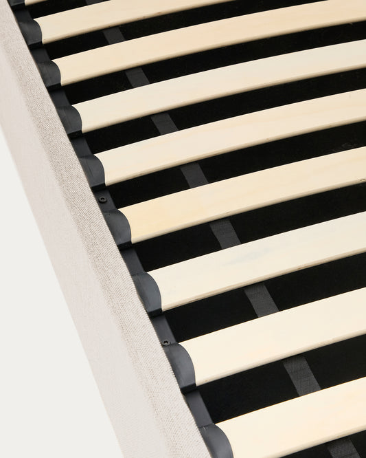 - Upholstered bed with storage space for 90 x 200cm mattress.
