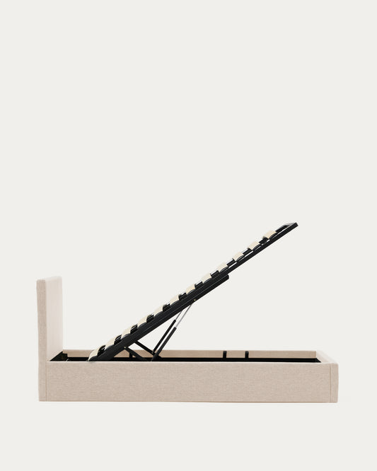 Nahiri beige chenille lift-up storage bed for a 90 x 200 cm mattress