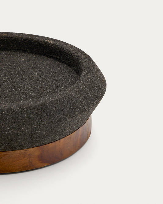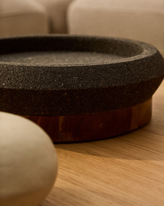 Naro centrepiece in black stone and teak wood Ø30cm