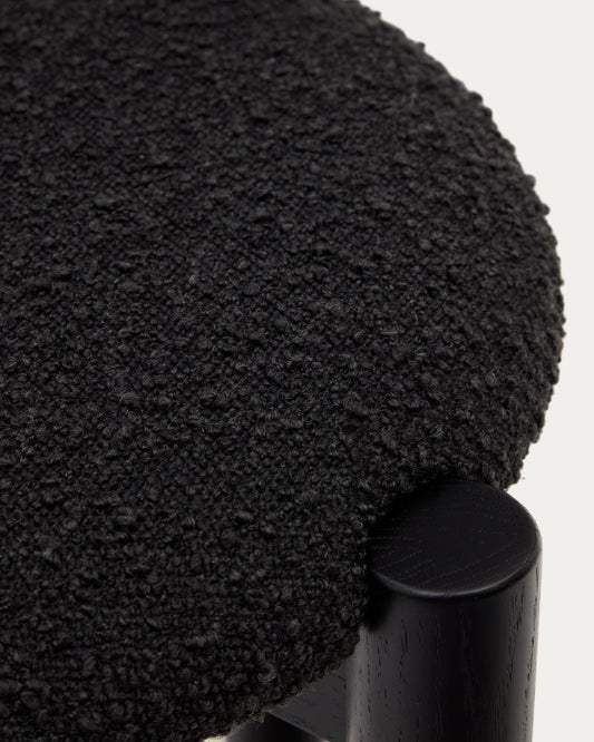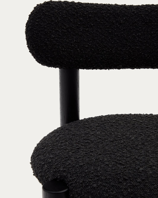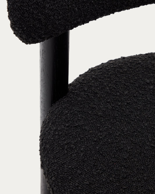 Nebai chair in black bouclé and solid oak wood structure with black finish