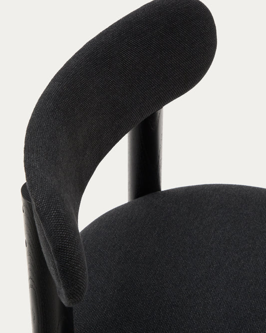 - Upholstered backrest and seat in black chenille fabric.