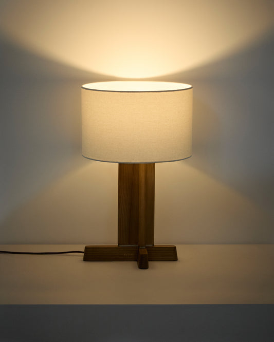 - Rubber wood table lamp with cotton lamp shade.