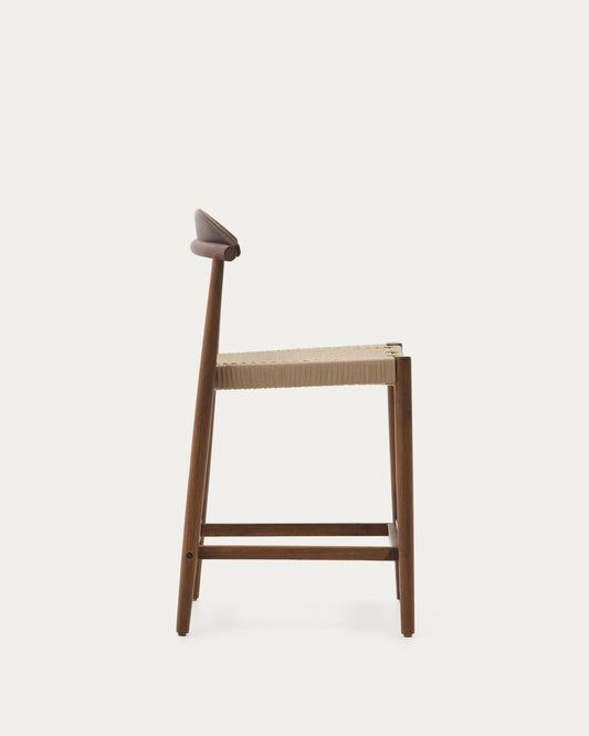 Nina solid acacia wood stool with walnut finish and beige rope height 62 cm