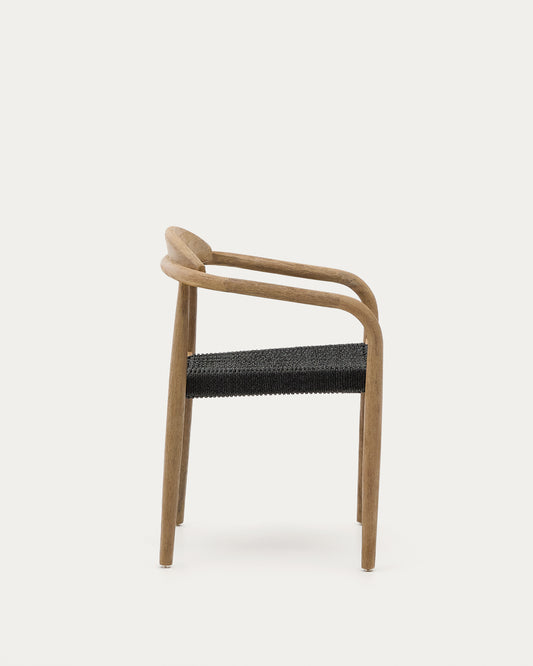 Nina stackable chair in solid acacia wood and black rope seat FSC 100%
