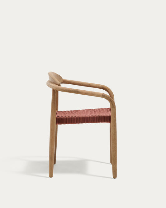 Nina stackable chair in FSC 100% solid acacia wood and terracotta rope seat
