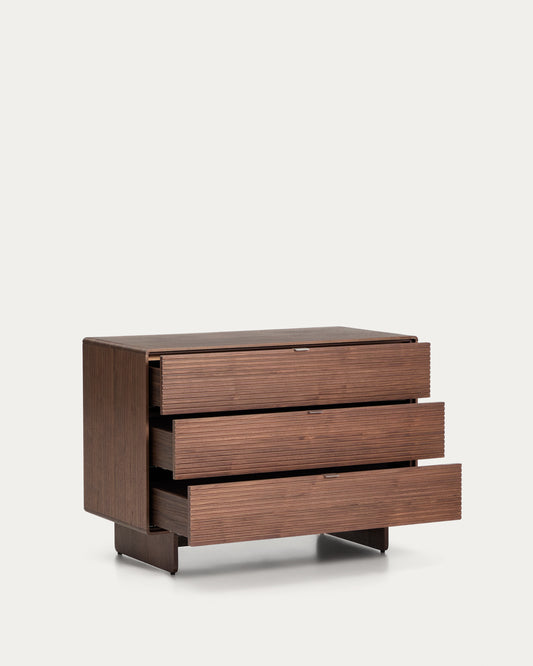 - Chest of drawers in walnut veneer, with 3 drawers with concealed runners and soft-close system.