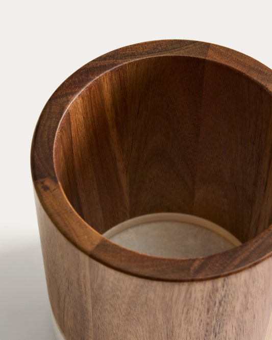 - Utensil holder made of marble and acacia wood.