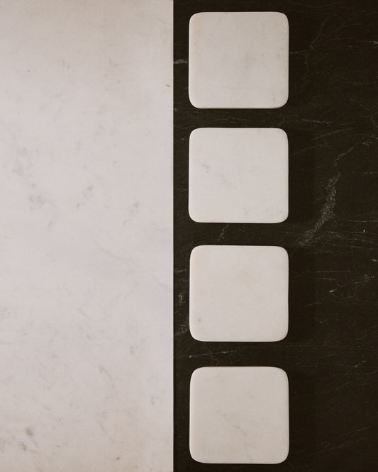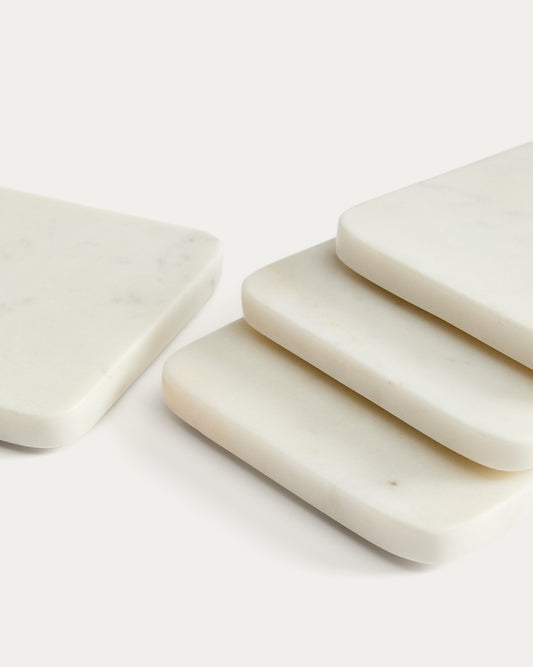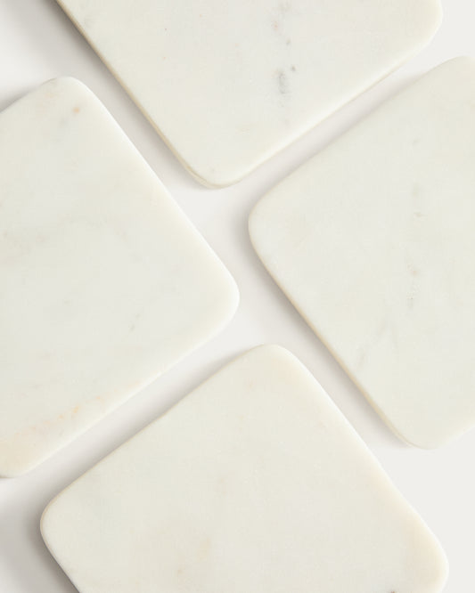 - Set of 4 white marble coasters.